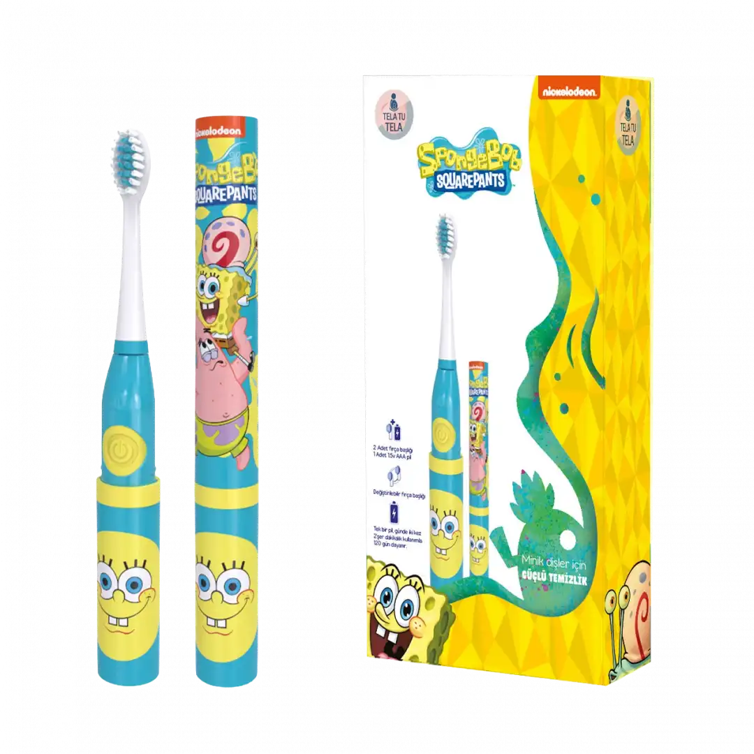 Sıradan diş fırçalarının aksine, pilli titreşim gücü sayesinde çok daha az eforla çok daha etkili bir temizlik sunar. Sünger Bob pilli diş fırçası, "fırçalama bitti mi?" sorusunu ortadan kaldıran 2 dakikalık zamanlayıcısı ile çocuklara kendi kendine bakım yapma disiplini kazandırır.
